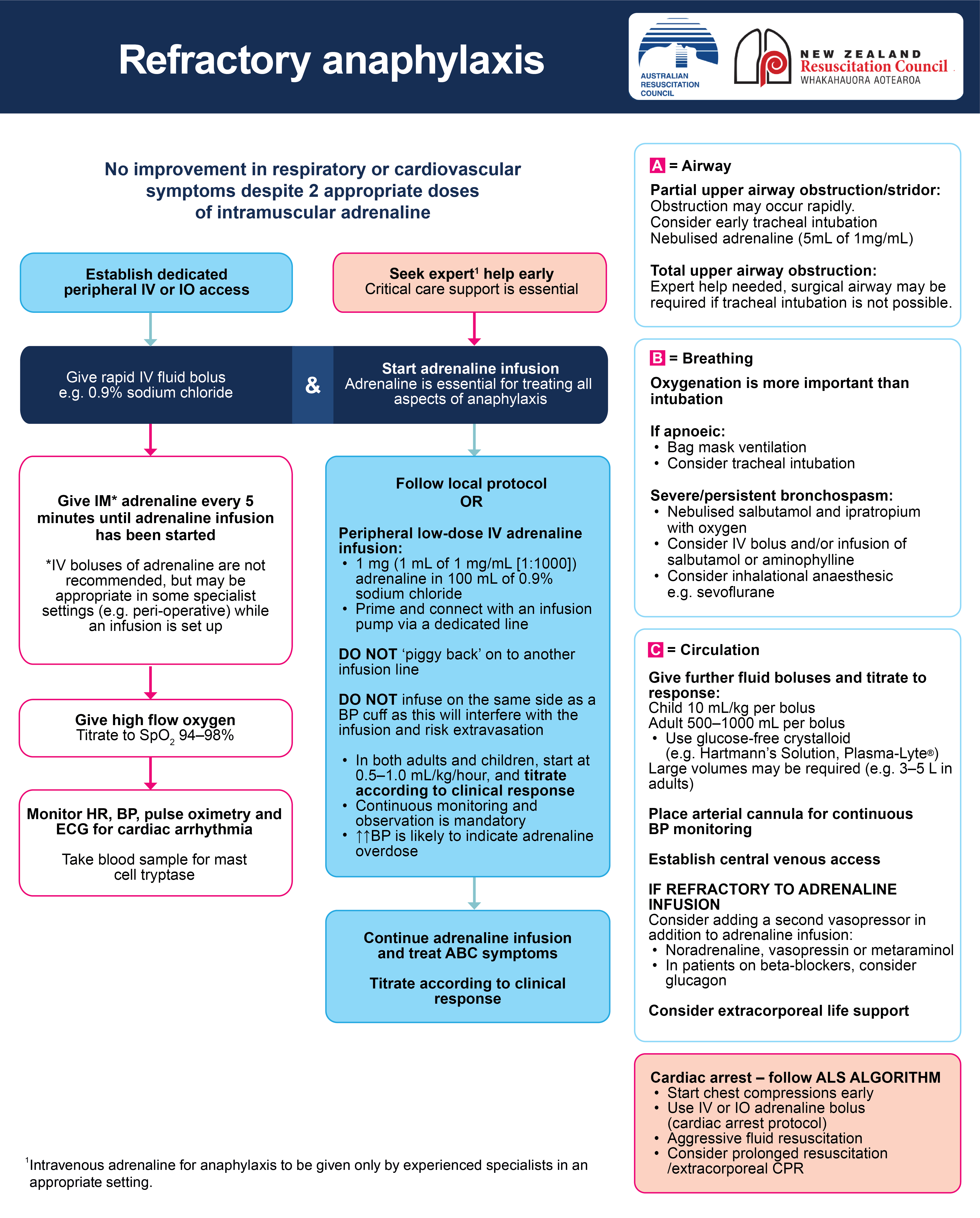 ANZCOR, 2025, Refractory Anaphylaxis , accessed 13 November 2025, https://www.anzcor.org/home/algorithms-and-flowcharts/refractory-anaphylaxis-algorithm